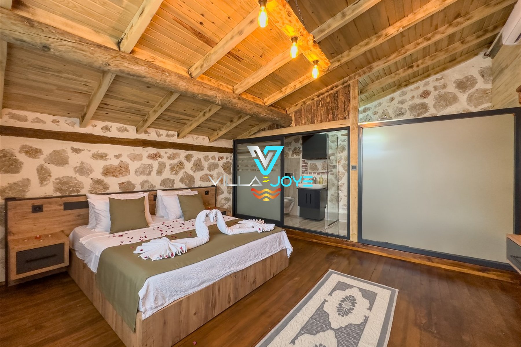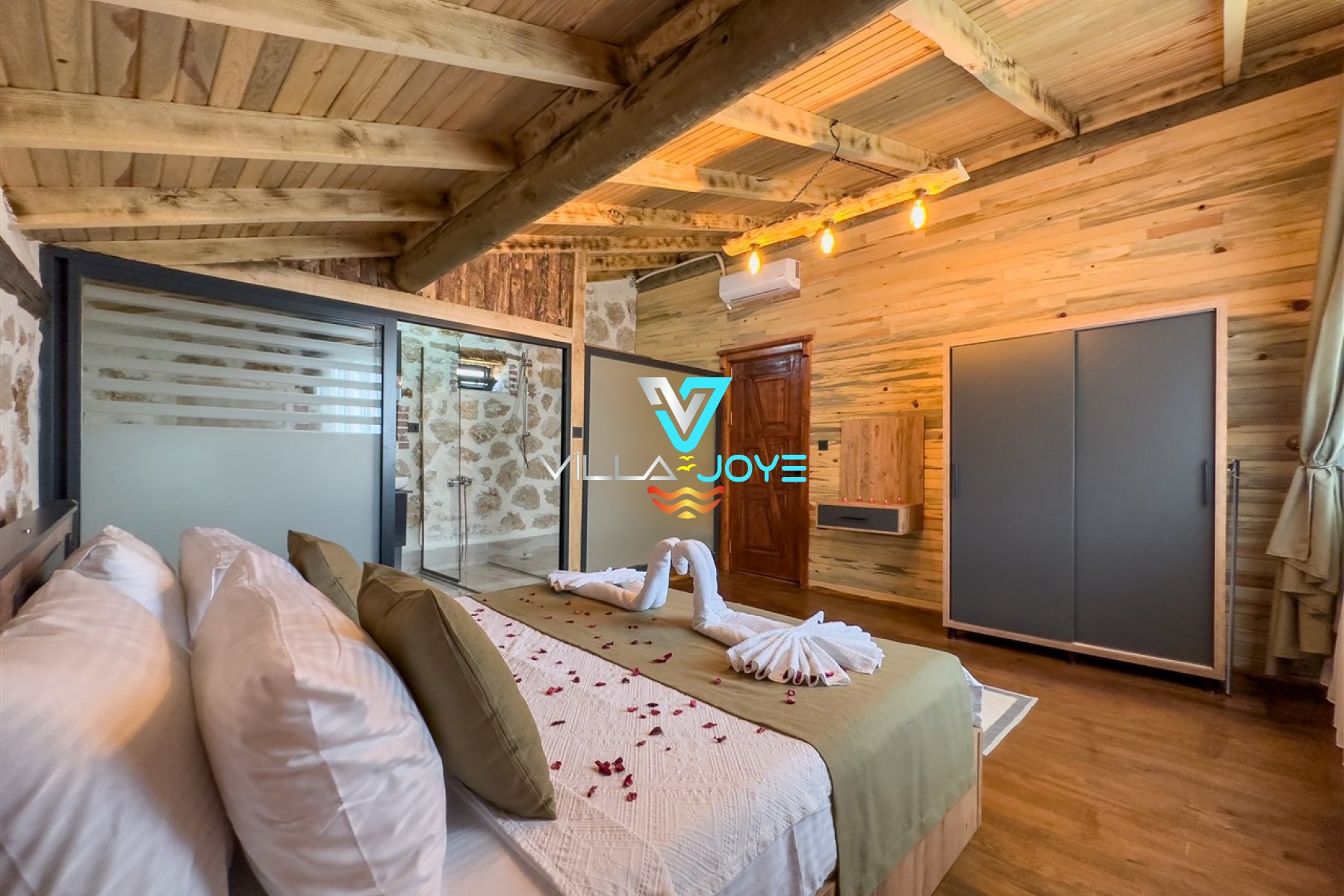 1. Oda : Çift Kişilik Yatak, Klima, WC+Banyo