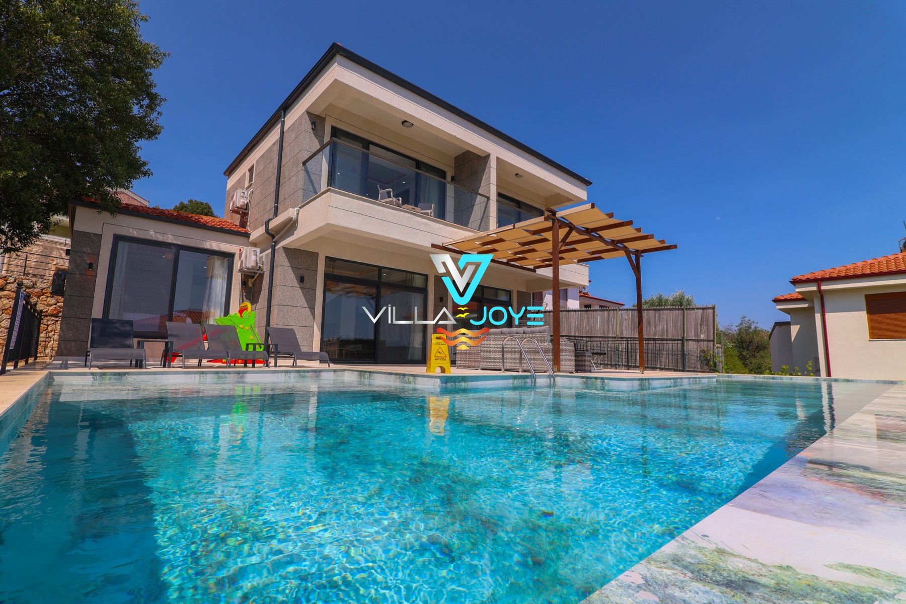 575-1 ve 575-2 Nolu tatil evlerimiz aynı konumda bulunan, havuzları ve bahçeleri birbirinden bağımsız evlerimizdendir. Daha kalabalık aileler / arkadaş grupları 2 evimizi beraber kiralayarak da konaklayabilirler.