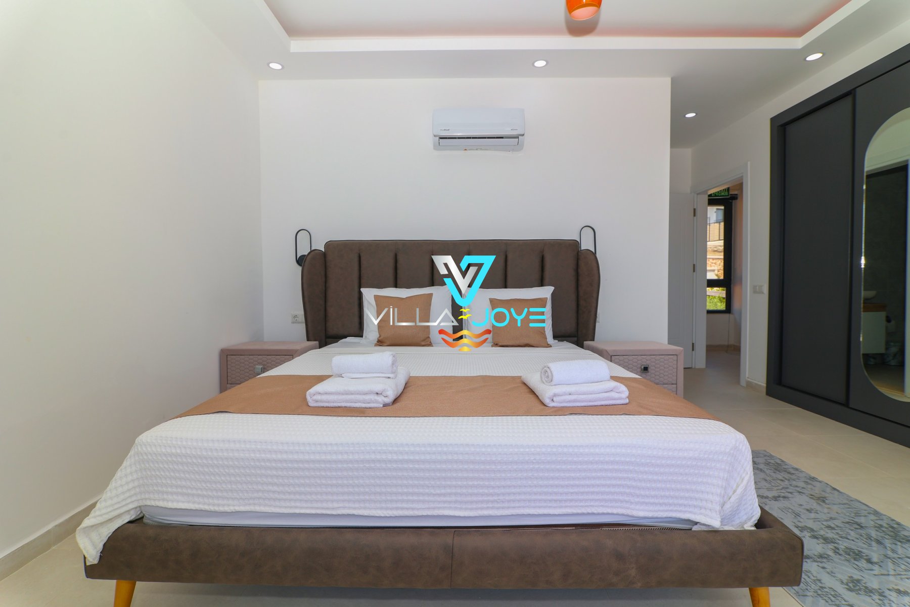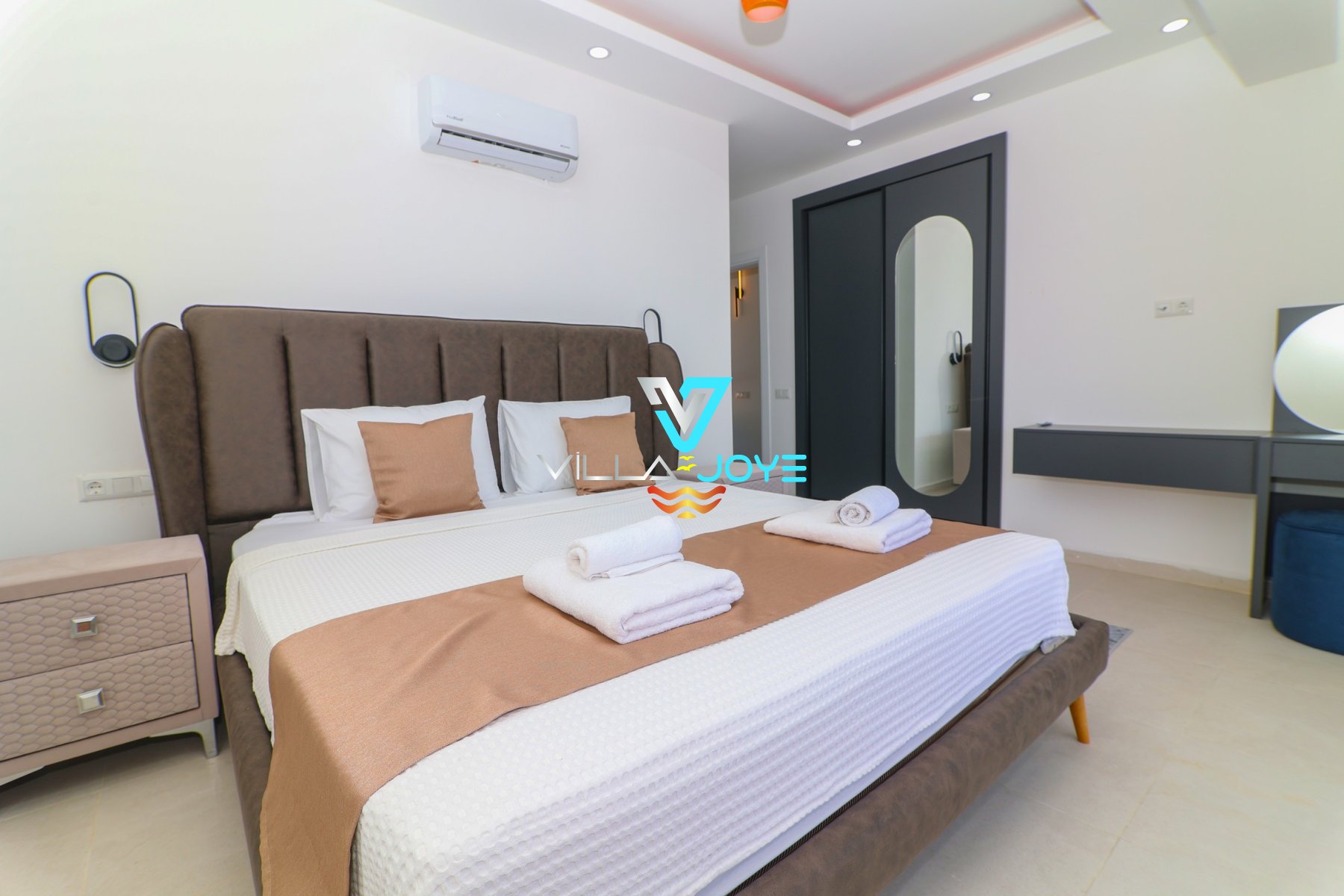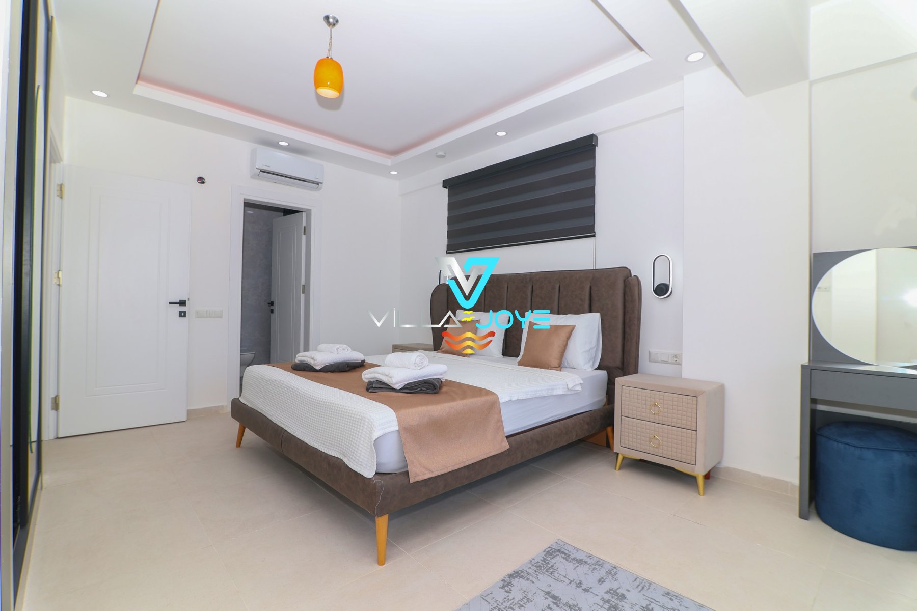 Evimizin tüm odalarında klima ve WC+banyo bulunur. Salonumuzda da TV ve klima ile ortak kullanımda olan 1 tane daha WC+banyo bulunmaktadır.