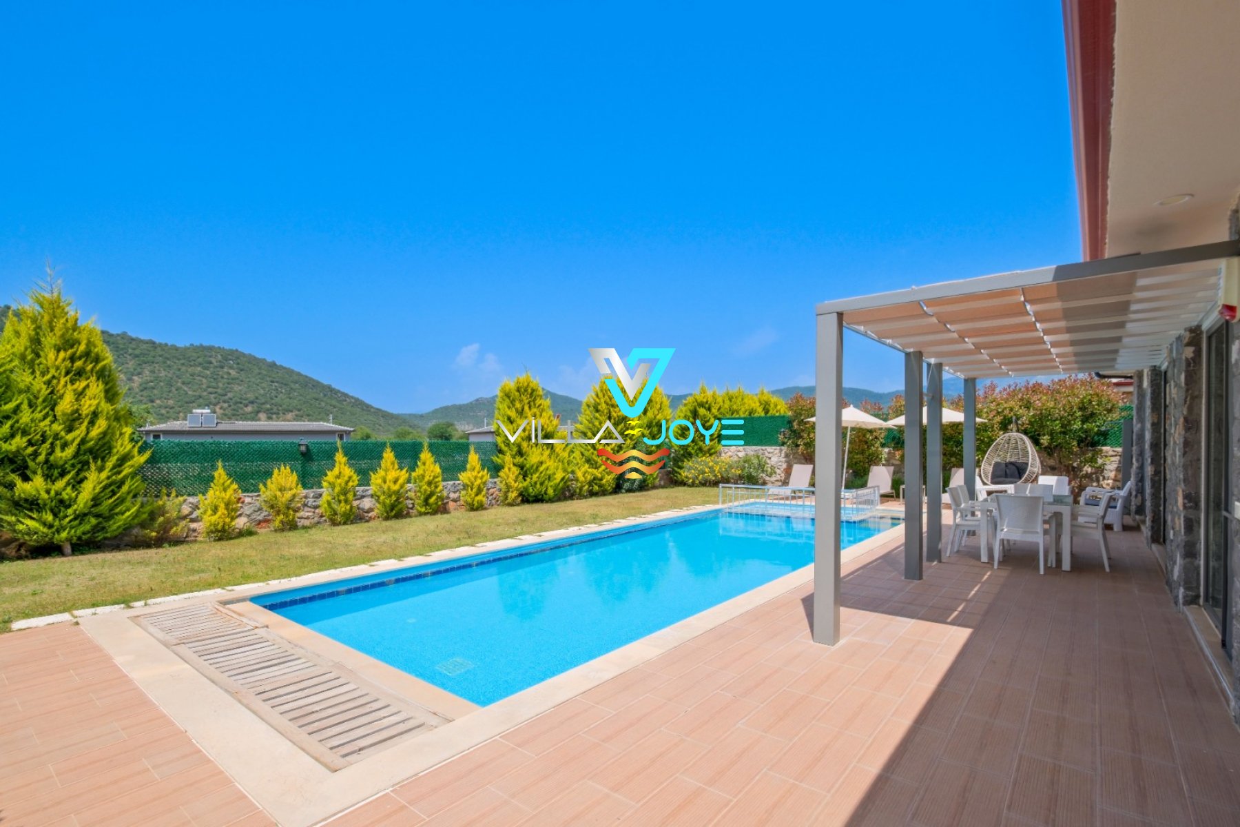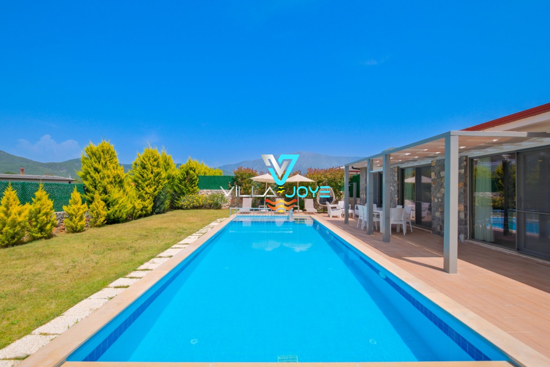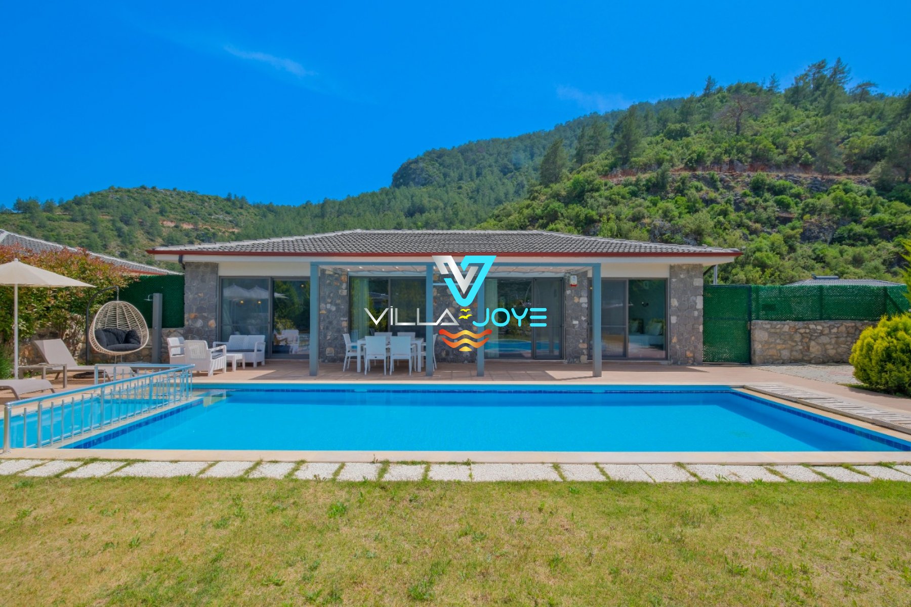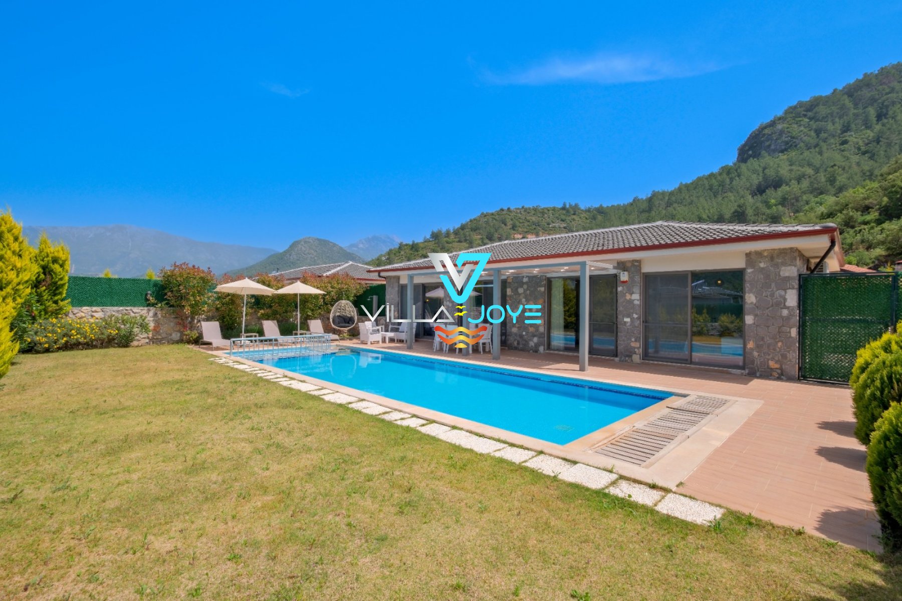 360-1 numaralı bu tatil evimiz, Muğla, Fethiye'de, merkeze 14,8 Km mesafede bulunan bir tatil evimizdir. Derinliği 1,5 Mt olan 32 M² özel havuzumuz, 8 M² de çocuk havuzumuz bulunmaktadır.