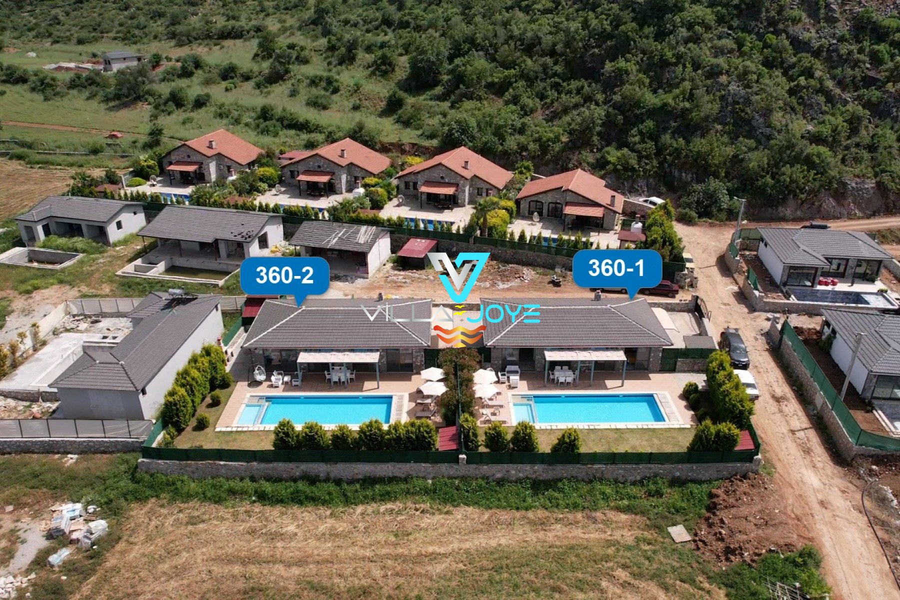 360-1 ve 360-2 Nolu tatil evlerimiz aynı konumda bulunan, havuzları ve bahçeleri birbirinden bağımsız evlerimizdendir. Daha kalabalık aileler / arkadaş grupları 2 evimizi beraber kiralayarak da konaklayabilirler.
